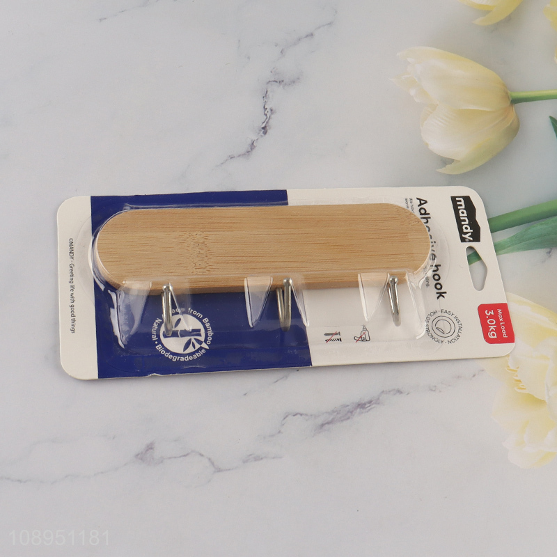 New Product Bamboo Wall Mounted Coat Hooks Coat Rack with 3 Hooks