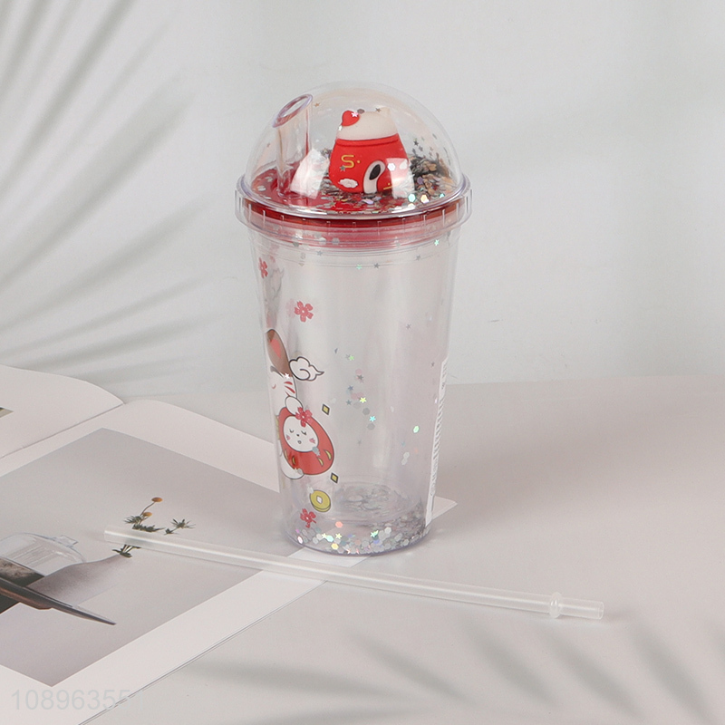 Top products double wall lucky cat drinking cup with lid and straw