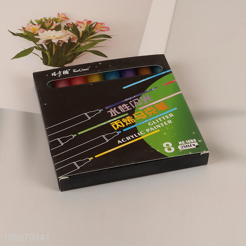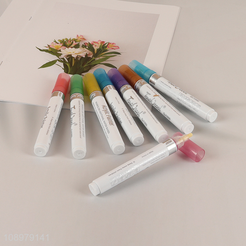 Hot Selling 8 Colors Water Based Round Tip Glitter Acrylic Paint Markers Set