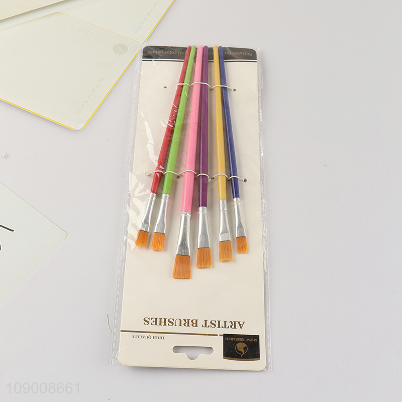 New Arrival 6PCS Plastic Handle Paintbrush Acrylic Paint Brush Set