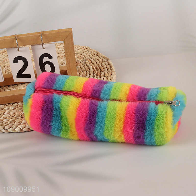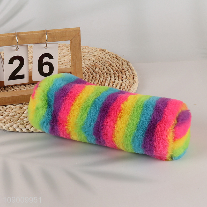 Top products rainbow color plush kids students pencil bag with zipper