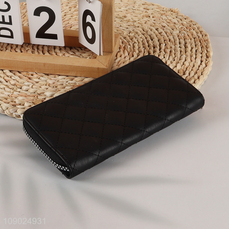 Hot items black long style fashionable pu leather wallet for women