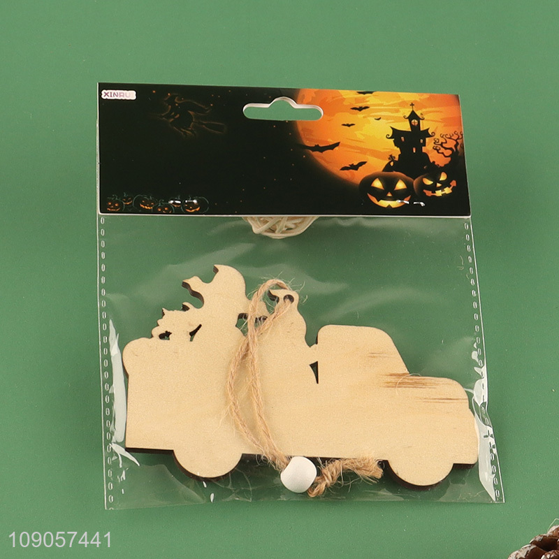 High Quality Halloween Wooden Hanging Decorations Wooden Pumpkin Car with Rope