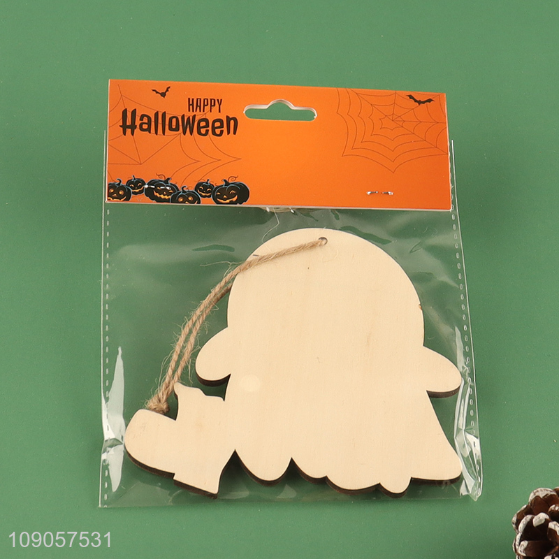 Online Wholesale Halloween Ghost Decorations Wooden Hanging Ornaments with Rope