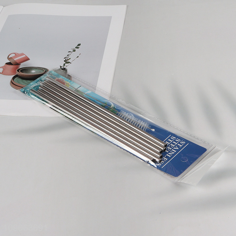 Hot Sale 6 Pack Stainless Steel Straws Straight Straws with 1 Straw Brush