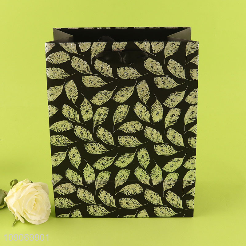 Best price leaves pattern eco-friendly gifts packaging paper bag