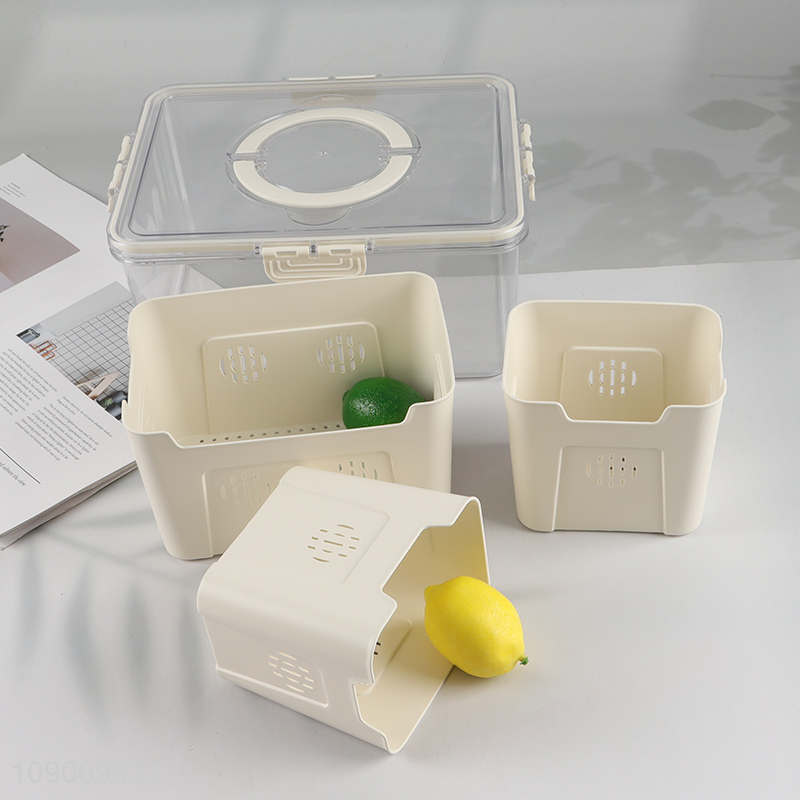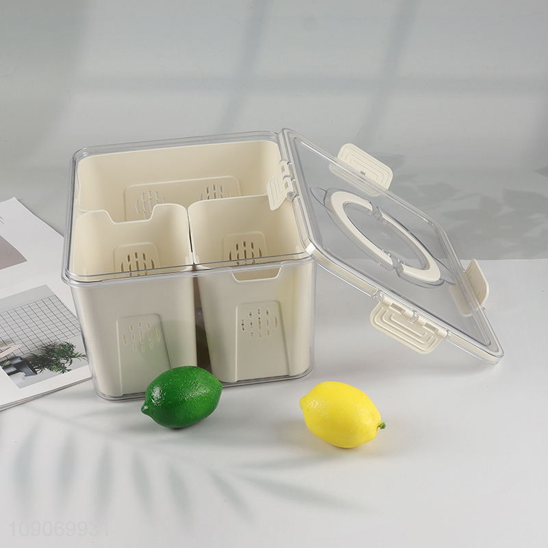 High Quality Divided Plastic Refrigerator Organizer with 3 Removable Colanders