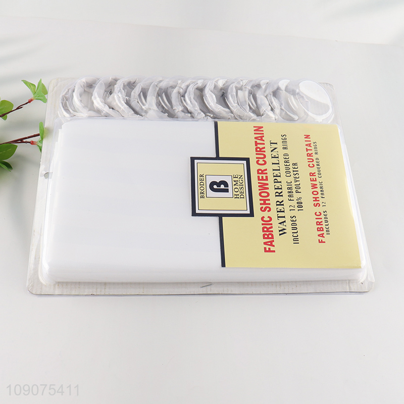 Best selling waterproof home hotel shower curtain with 12 fabric couered rings