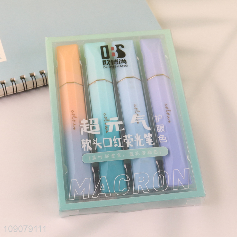 Latest products 4pcs quick dry drawing students stationery highlighter pen set