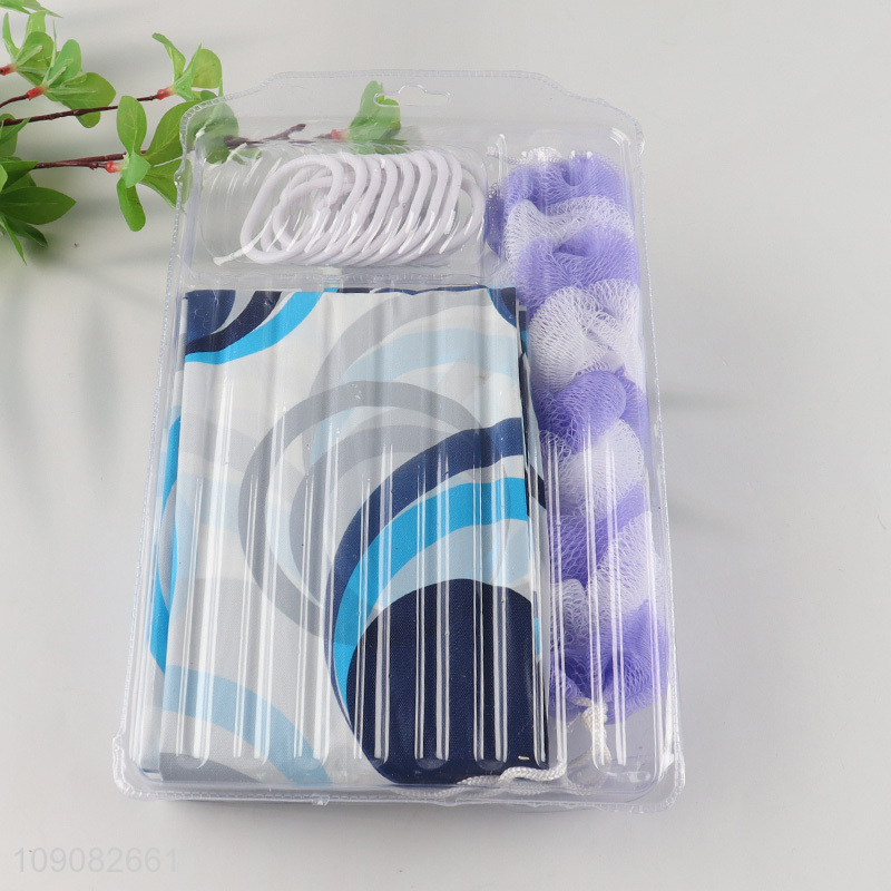 Low price bathroom accessories PE shower curtain with bath scrubber