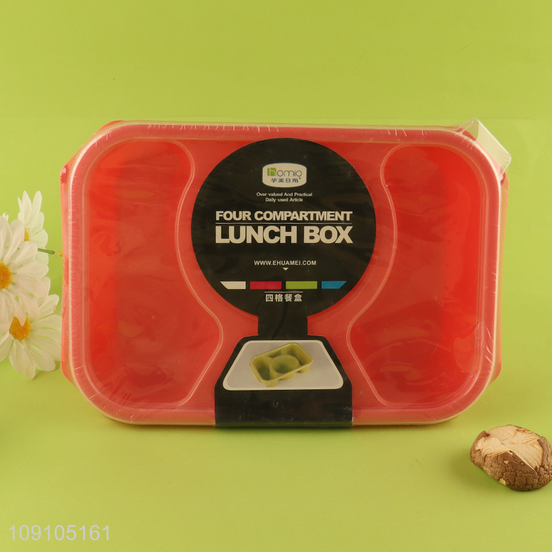 Wholesale Plastic Lunch Box 4-Compartment Plastic Bento Lunch Box with Spoon & Fork