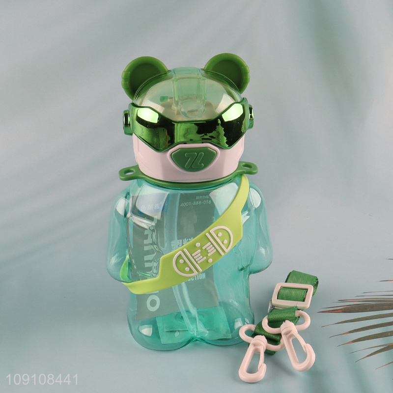 Wholesale Cute Bear Water Bottle Kids Water Bottle with Straw & Strap
