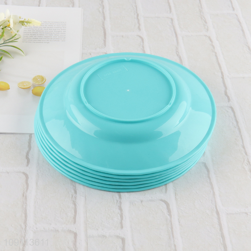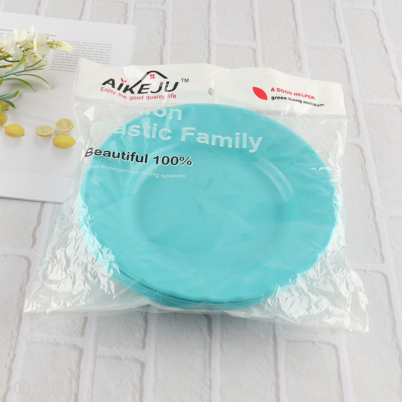 Hot selling round blue 6pcs plastic disposable tableware plate wholesale