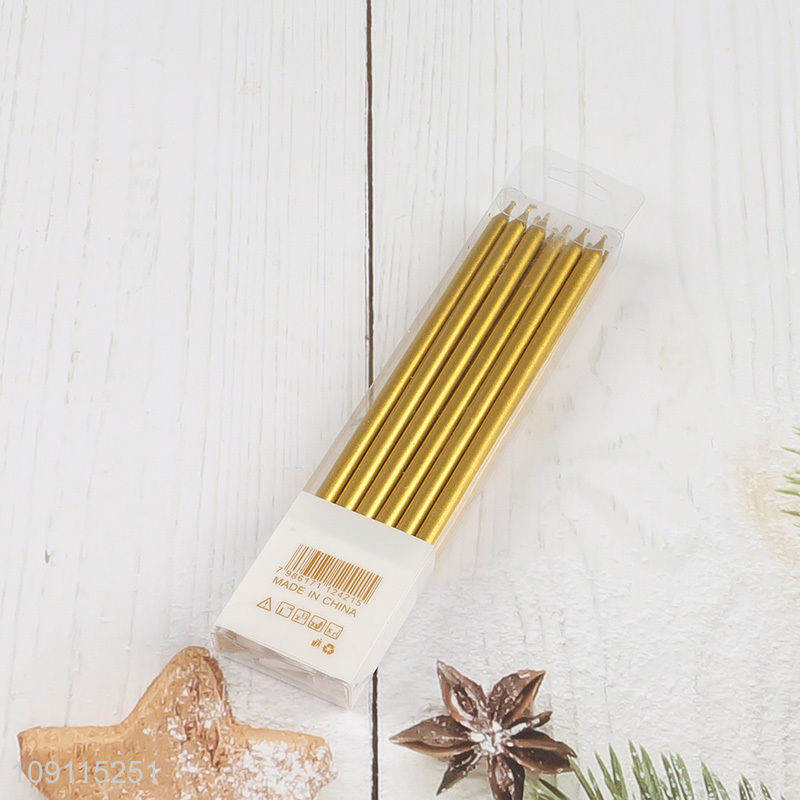 New Arrival 12 Pieces Gold Long Thin Metallic Birthday Candles for Birthday Wedding