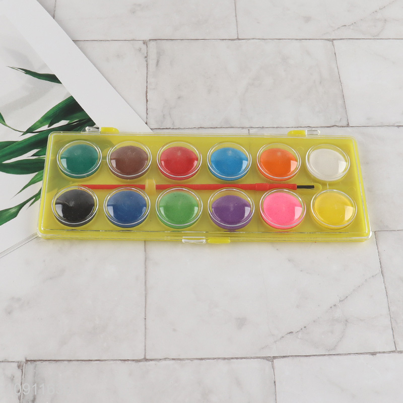 Hot products 12colors non-toxic washable watercolor paint with painting brush