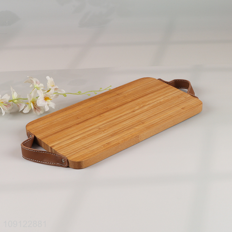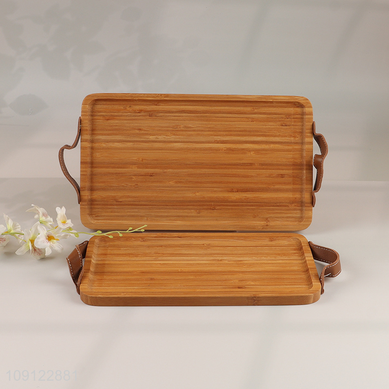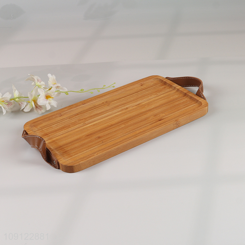 Hot Selling Bamboo Serving Tray Bamboo Serving Platter with PU Leather Handles