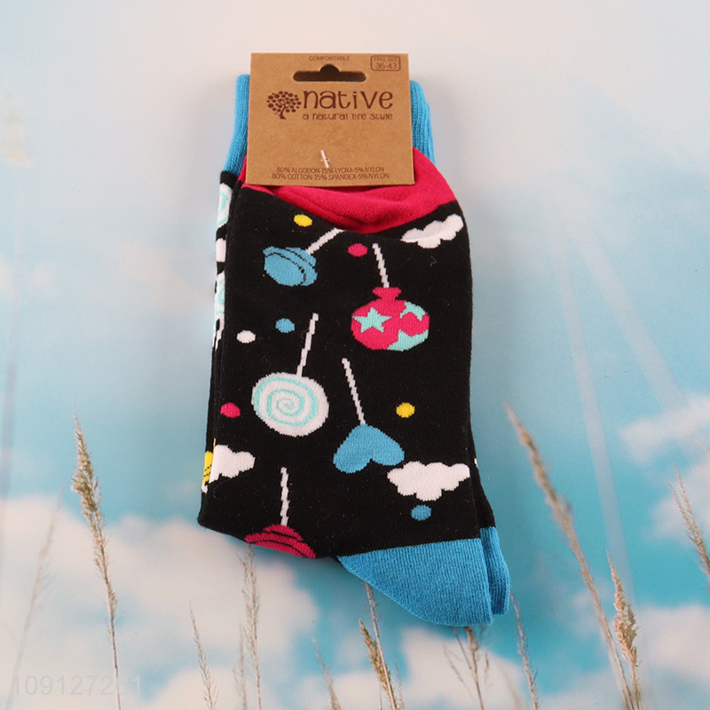 Top quality cartoon printed cotton breathable mid tube socks for men women