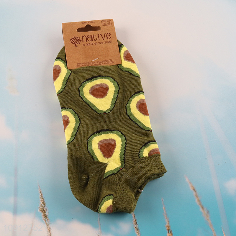 Best quality avocado printed cotton breathable ankle socks