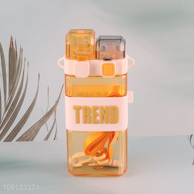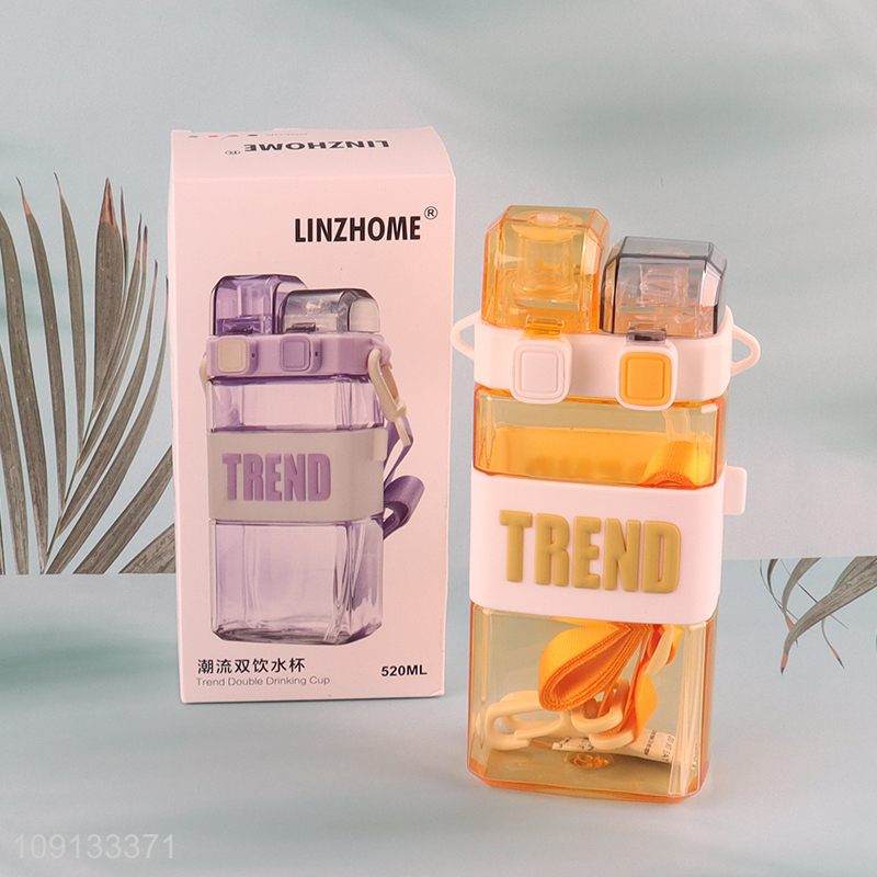 New Product 550ml Double Drinking Water Bottle with Shoulder Strap & Straw