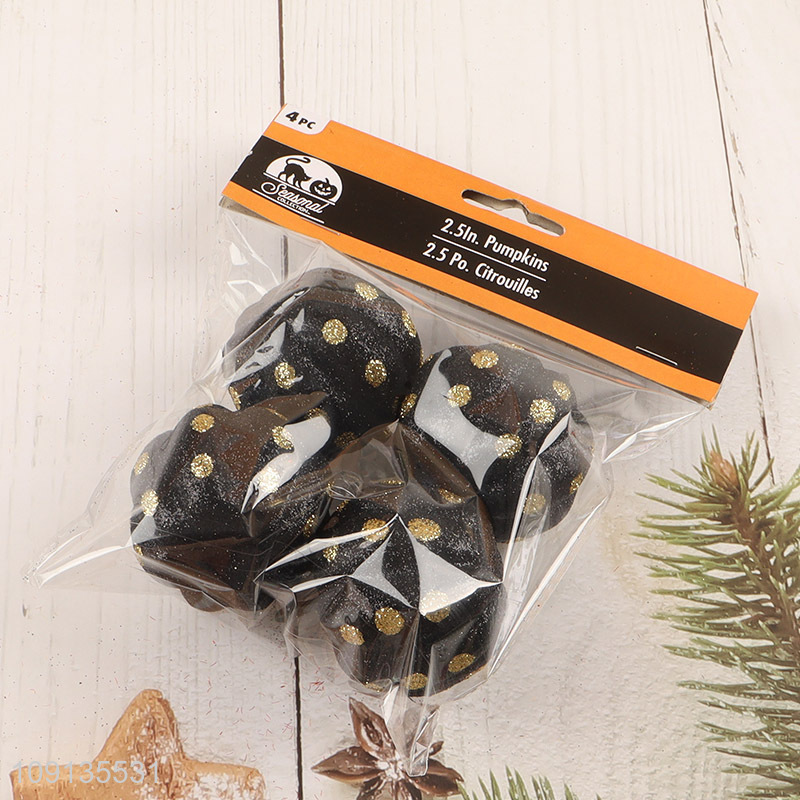 New Arrival 4 Pieces Glitter Halloween Pumpkins For Halloween Tabletop Decor