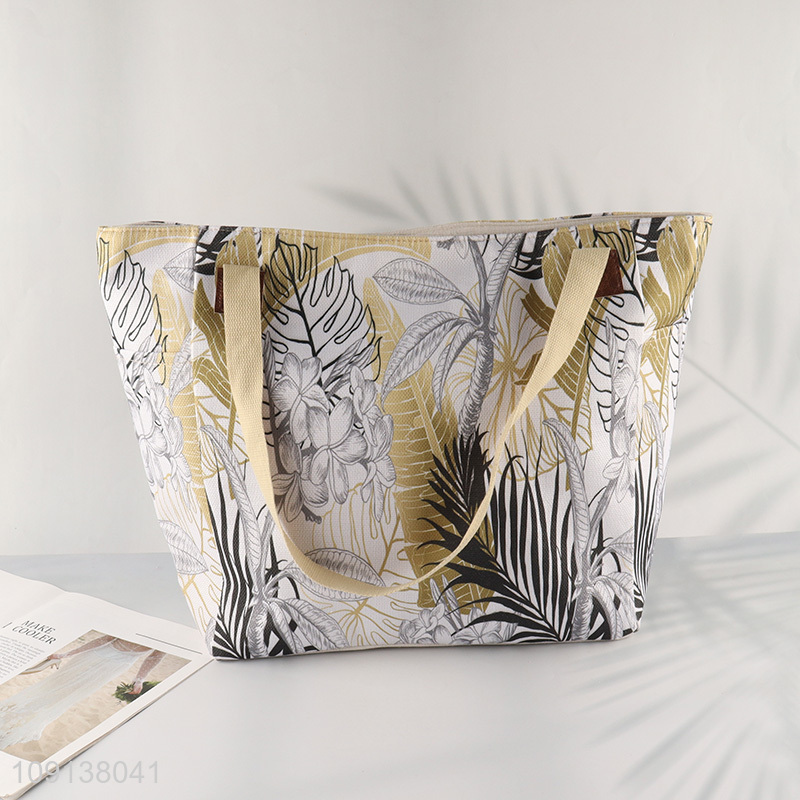 China Imports Custom Printed Zipper Canvas Beach Tote Bag