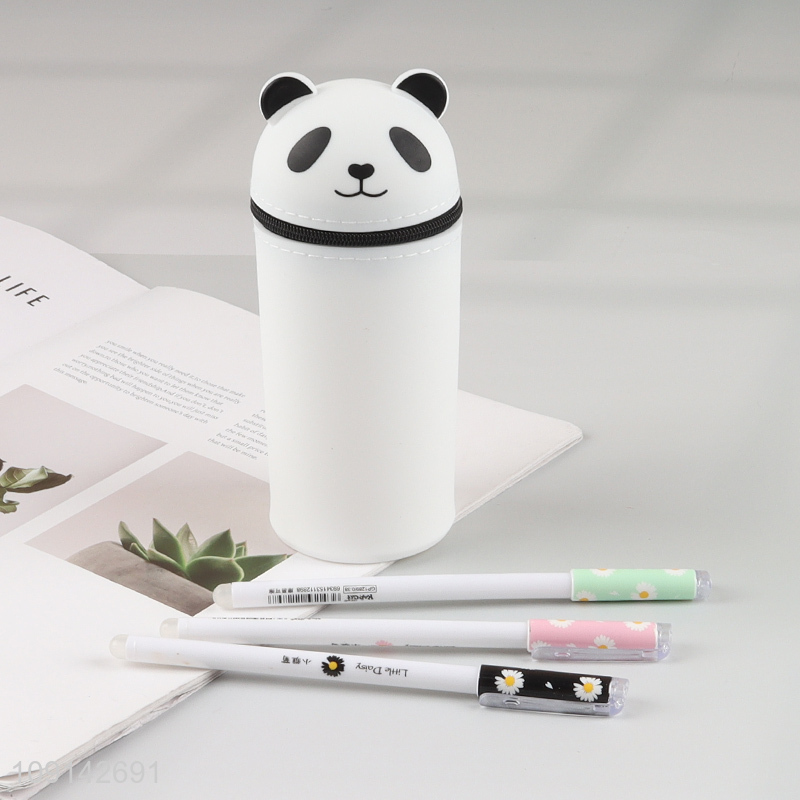 China factory cartoon panda shape silicone students pencil bag