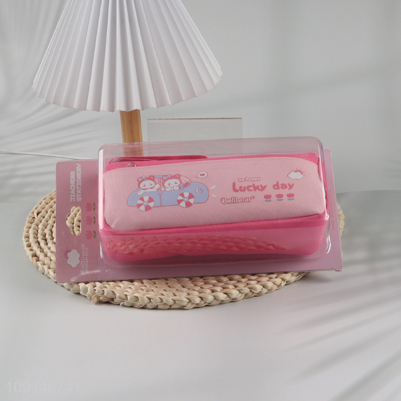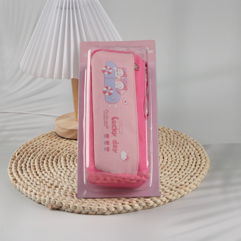 Hot items pink cartoon girls students stationery pencil case with zipper