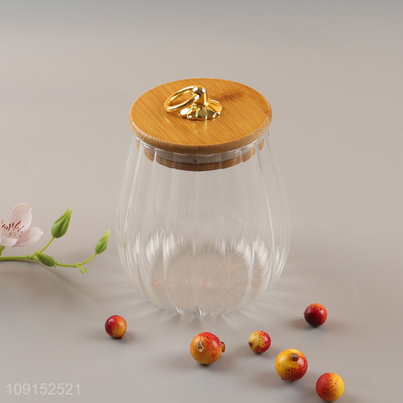 Top selling clear glass sealed storage jar with bamboo lid