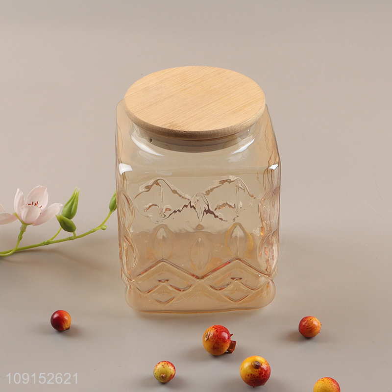 China supplier glass home kitchen sealed storage jar with bamboo lid