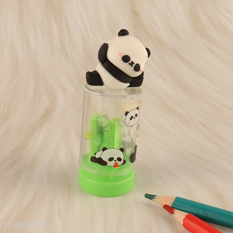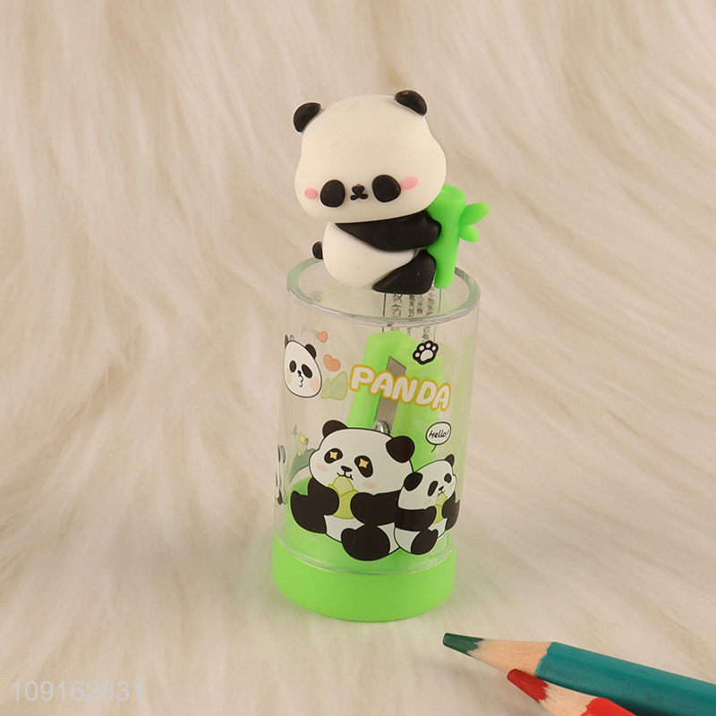 Factory price cartoon panda trash can pencil sharpener for sale