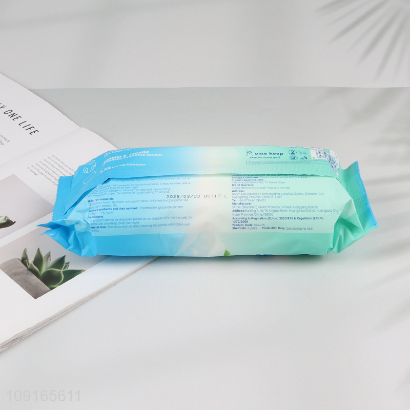 New Arrival 75PCS Gree Tea Scented Sterilizing Wipes Alcohol Free Wet Wipes