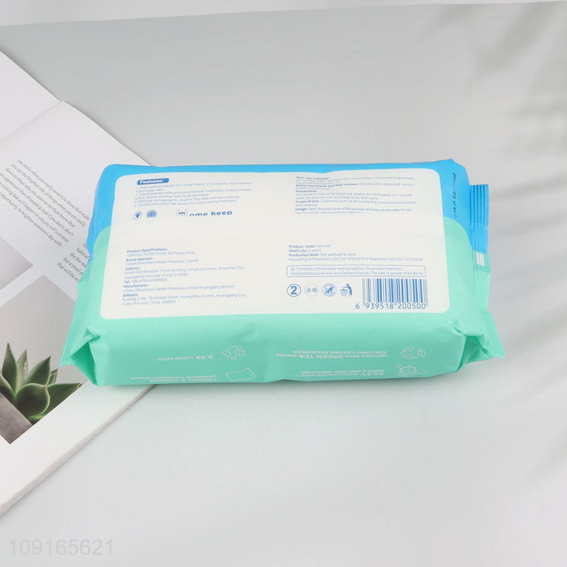 Hot Selling 60PCS Sterilizing Wipes Gree Tea Scented Alcohol Free Wet Wipes