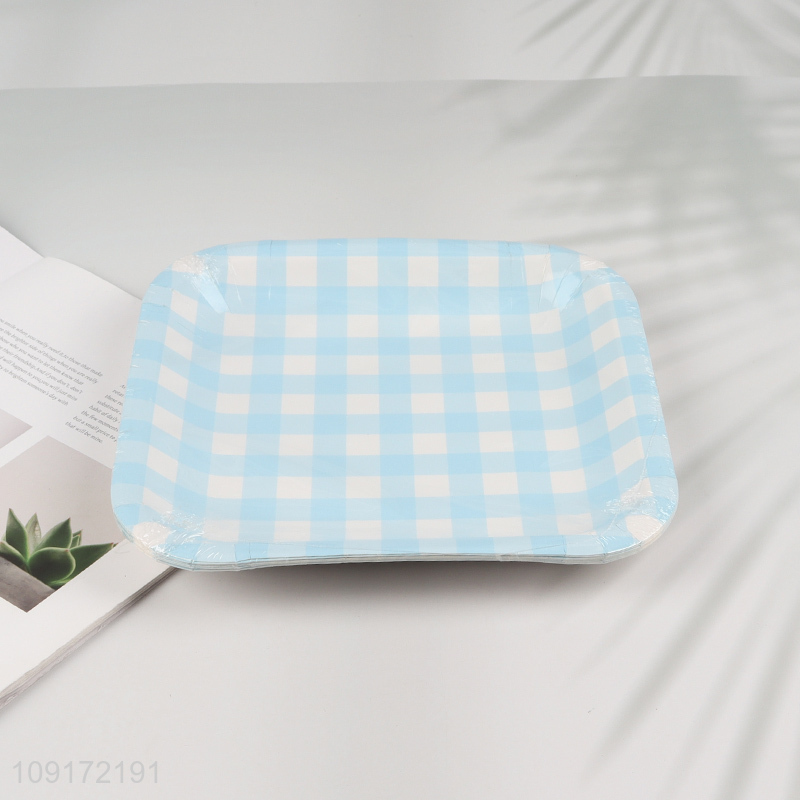 Low Price 10 Pieces Gingham Paper Plates Disposable Paper Plates for Birthday