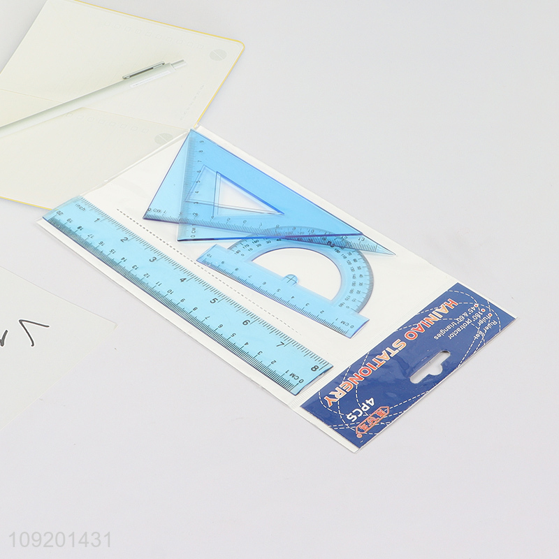 China supplier 4pcs professional plastic ruler set for stationery