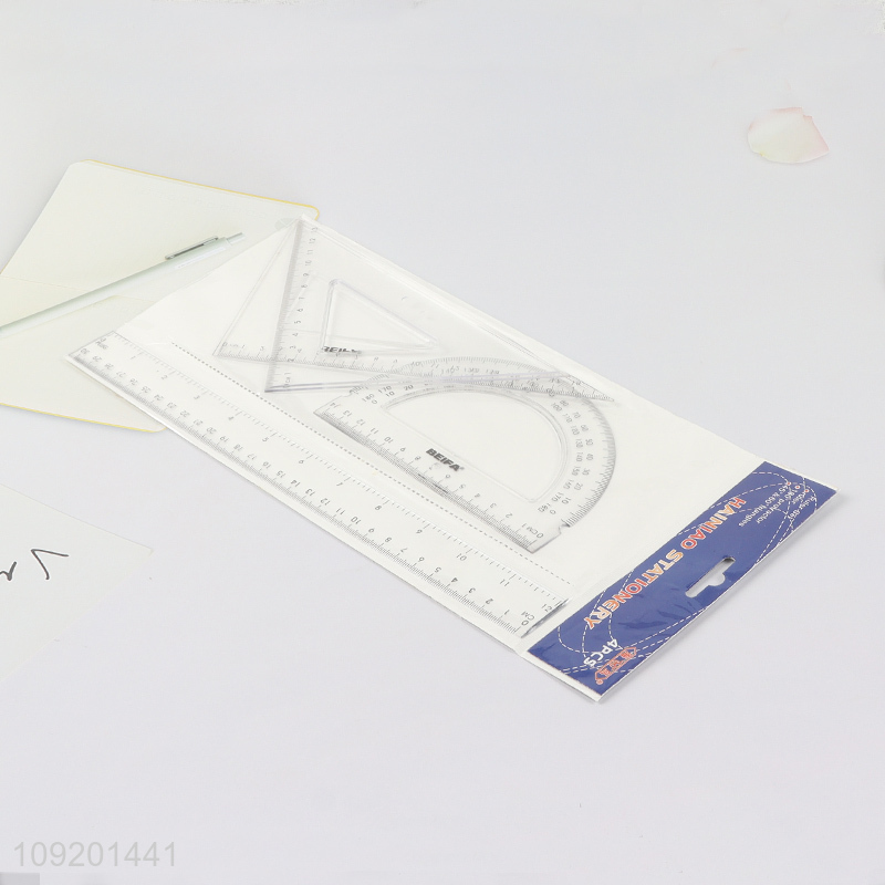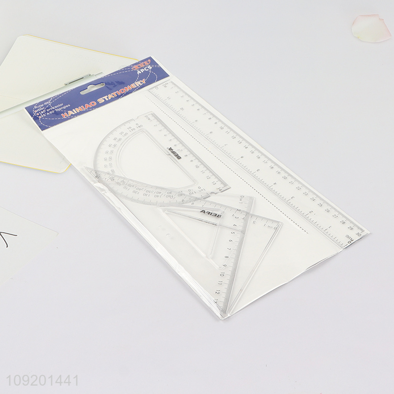 Top selling clear 4pcs plastic school students ruler set wholesale