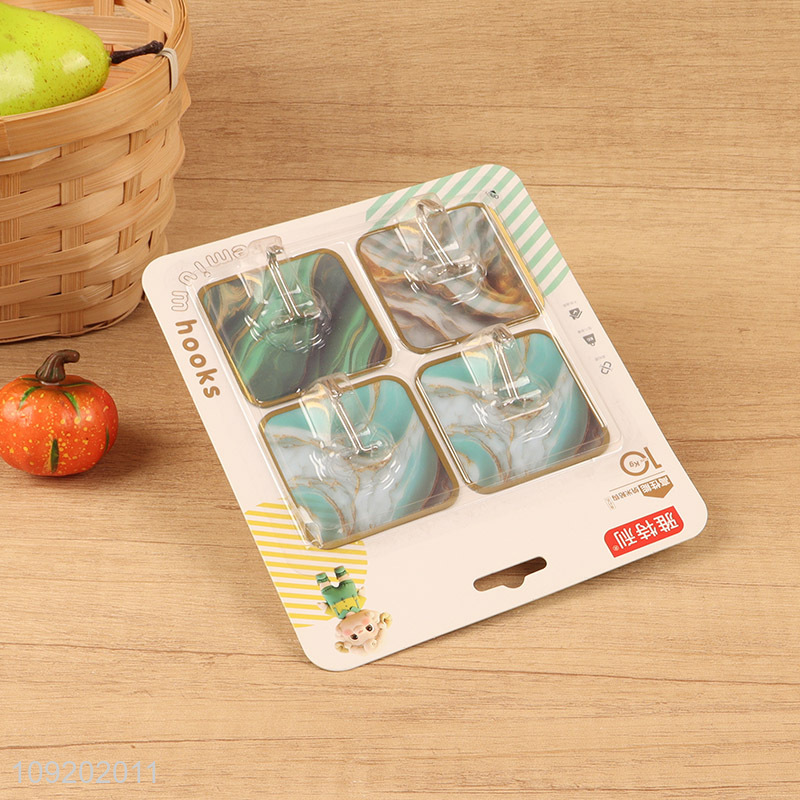 Hot items 4pcs household marble pattern sticky hook adhesive hook