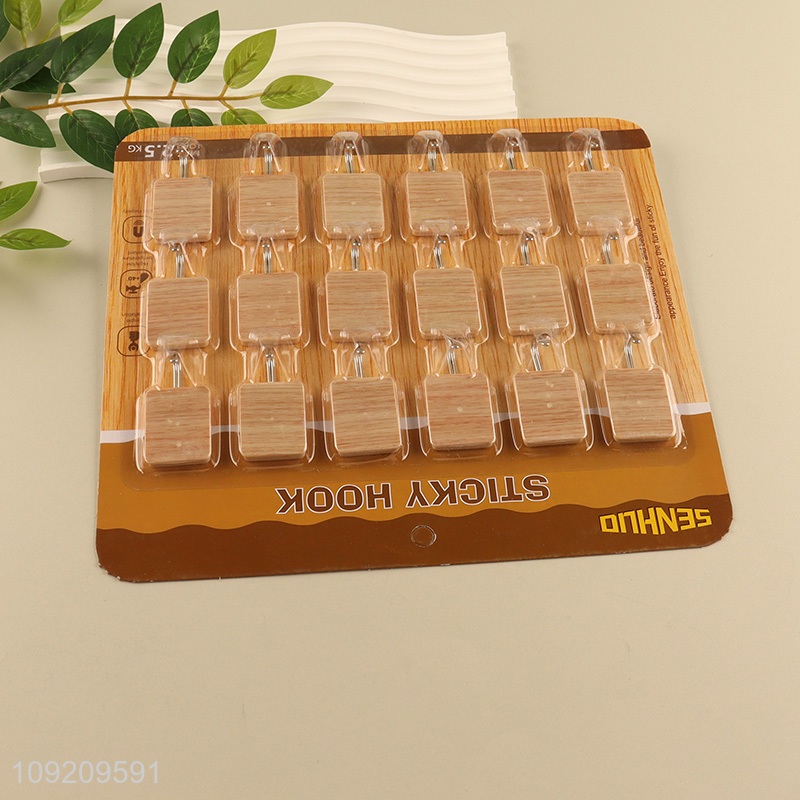 New Product 18 Pack Wood Grain Adhesive Hooks Sticky Wall Hooks