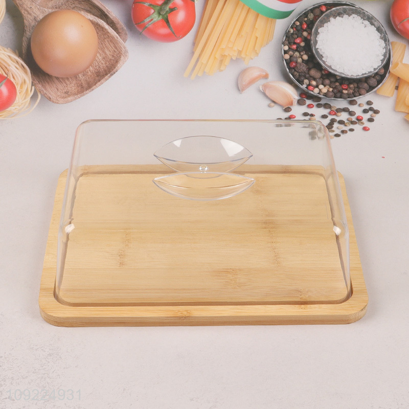 Factory Price Rectangular Bamboo Butter Dish Serving Tray with Lid