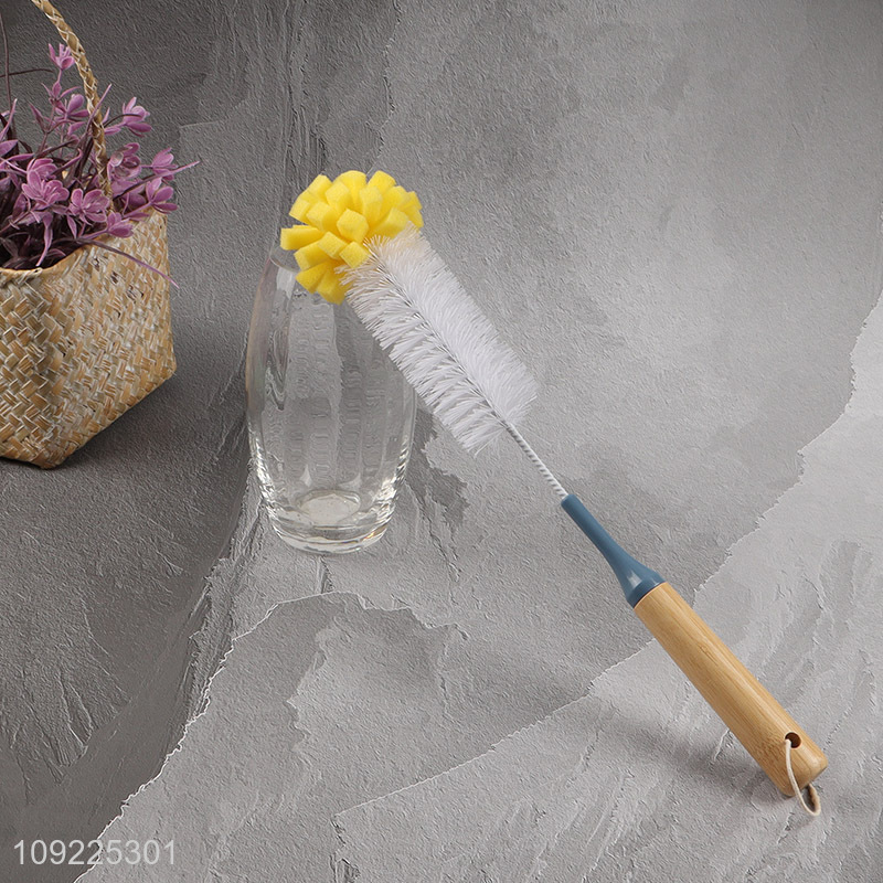 Factory Supply Wooden Handle Sponge Bottle Brush for Cleaning Beer Wine