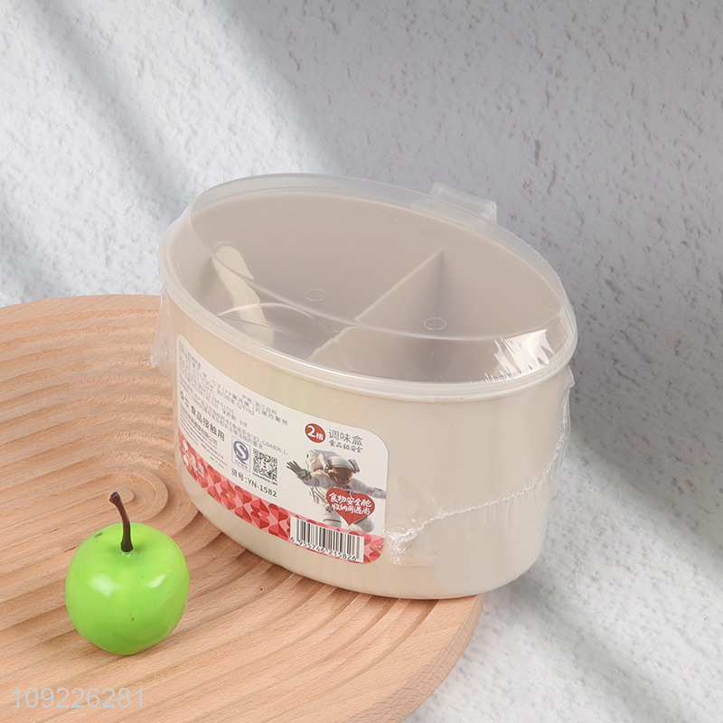 Wholesale 2-Compartment Plastic Spice Box Seasoning Container with 2 Spoons