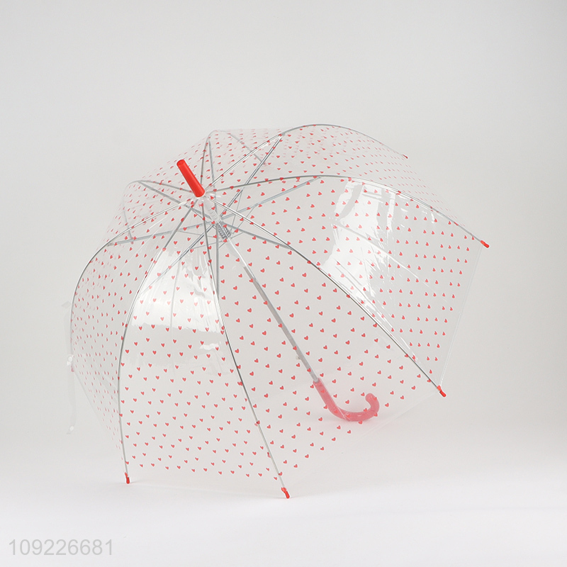 Factory Price Heart Printed Umbrella Clear Bubble Umbrella with Dome Canopy