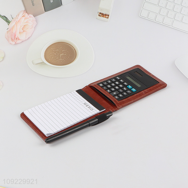 Hot Selling Pocket Notepad Holder Set PU Leather Memo Pad with Calculator
