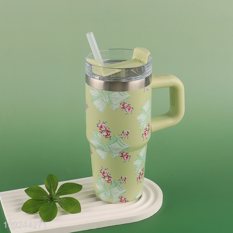 High Quality 420ml Stainless Steel Insulated Tumbler Travel Mug with Handle & Straw