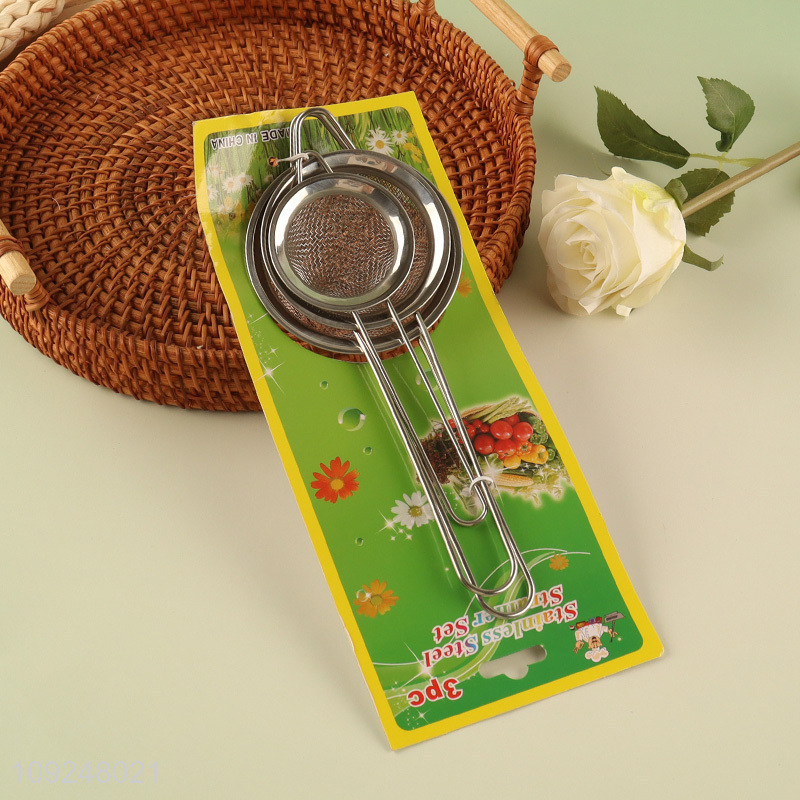 New Arrival 3 Pieces Stainless Steel Fine Mesh Strainers Colanders with Handle