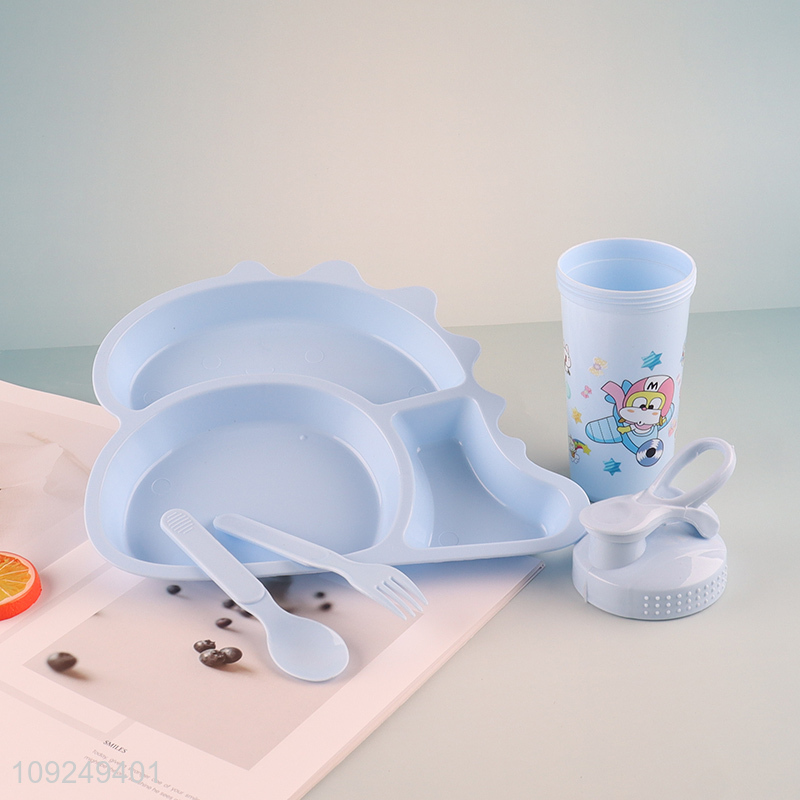 New Product Kids Plastic Dinnerware Set with Dinner Plate, Spoon, Fork & Water Bottle