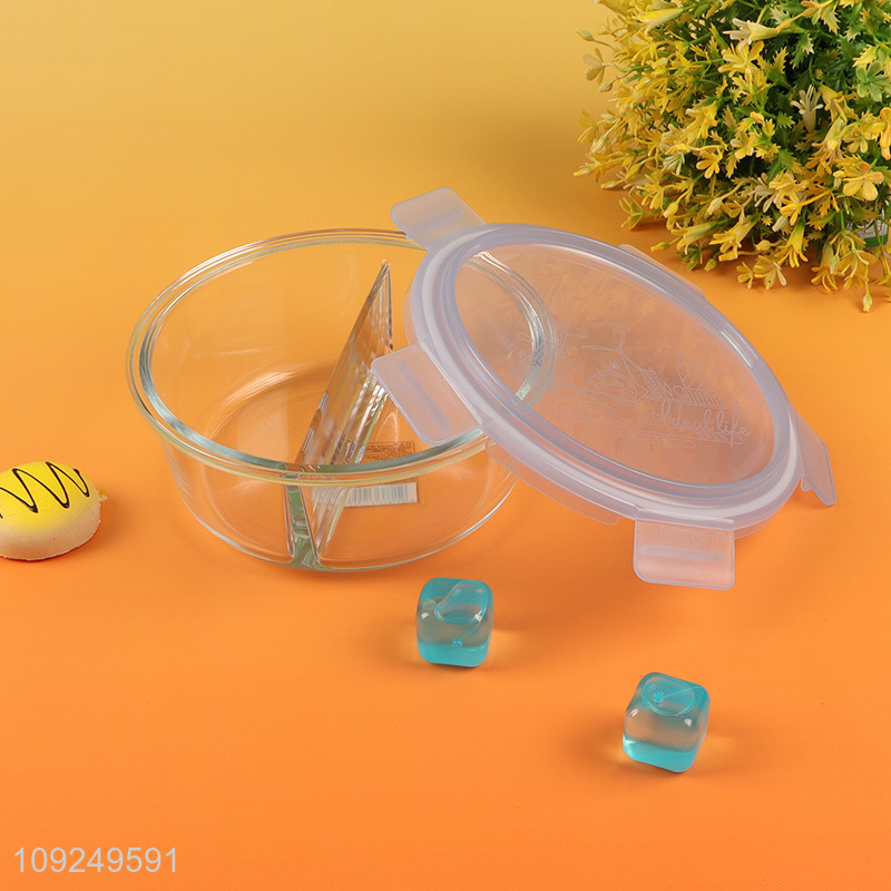 Good quality round clear 2compartment glass food container preservation box lunch box