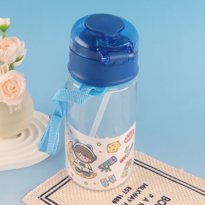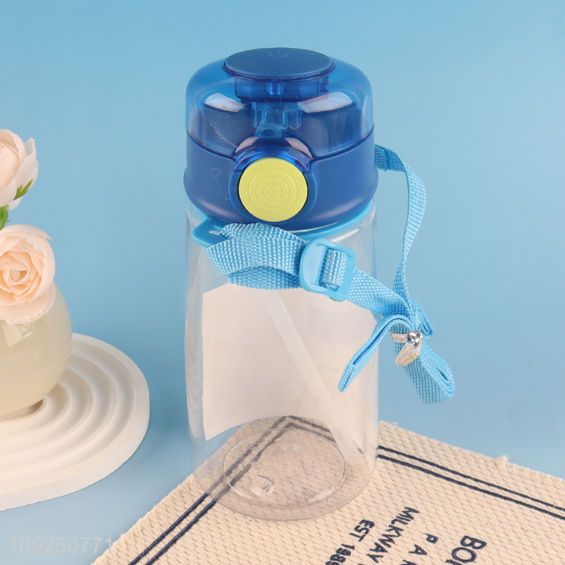 China Wholesale Kids Children Plastic Water Bottle with Shoulder Strap and Straw