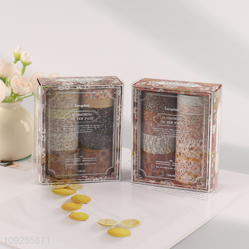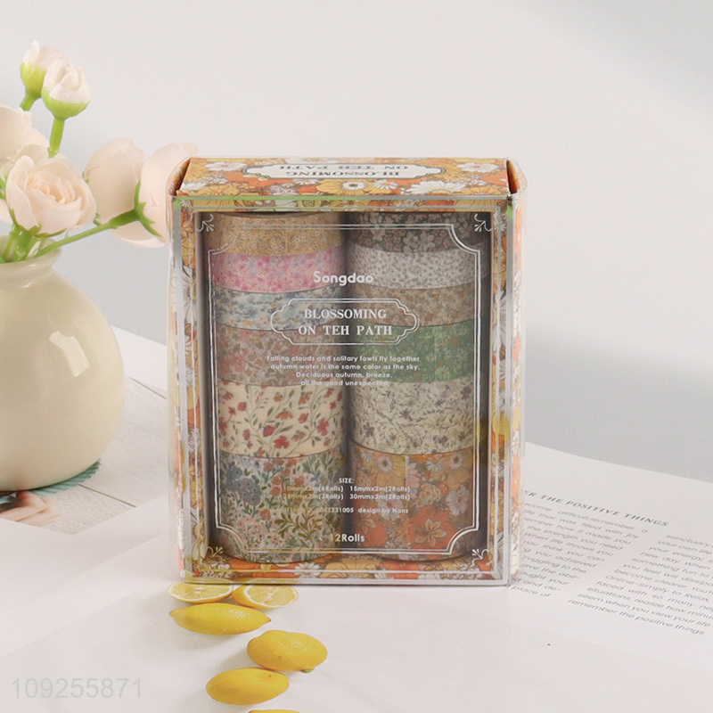 Good Quality 12 Rolls Floral Washi Tape Set Decorative Masking Tapes for DIY Scrapbooking
