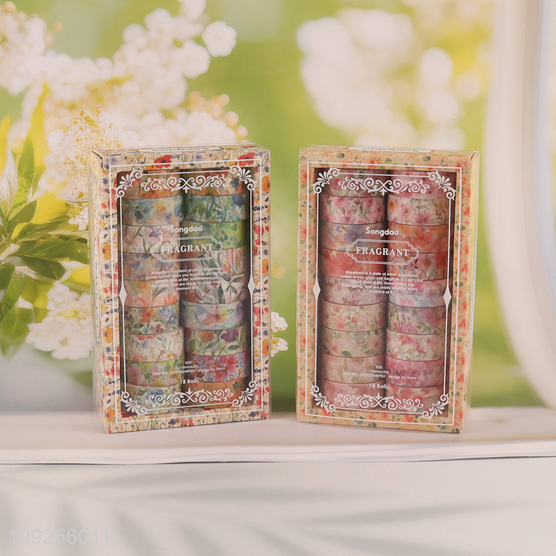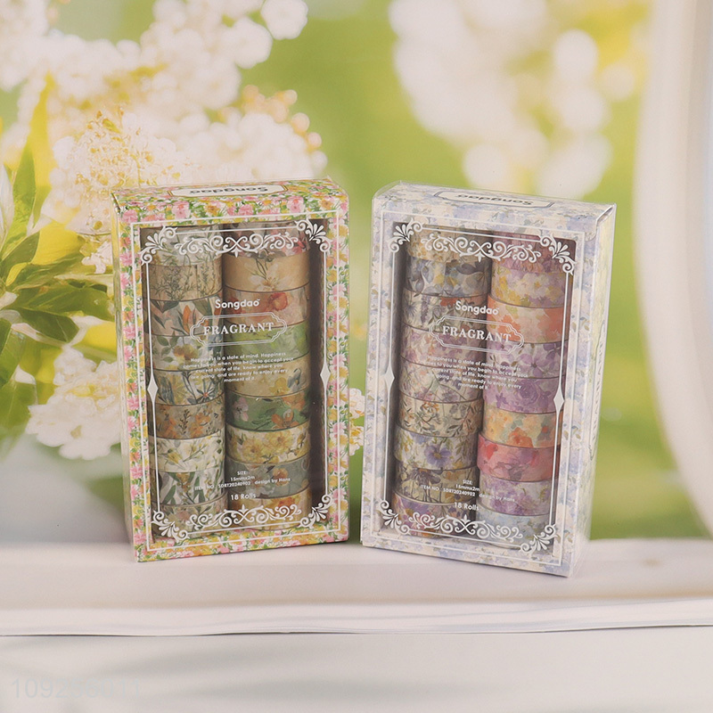 China Imports 18 Rolls Floral Washi Tape Set Decorative Flowers Tapes for DIY Journaling