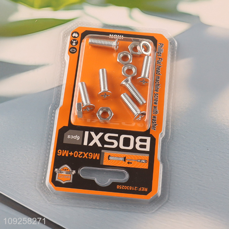 Hot Selling 6 Pieces M6 Iron Screws and Nuts Set Hardware Assortment Kit